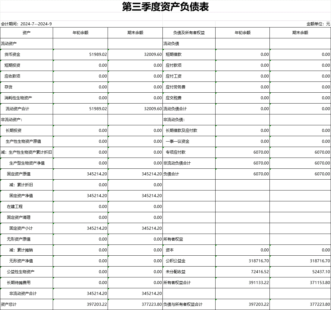 【財務收支】寨聯村2024年第三季度資產負債表公示