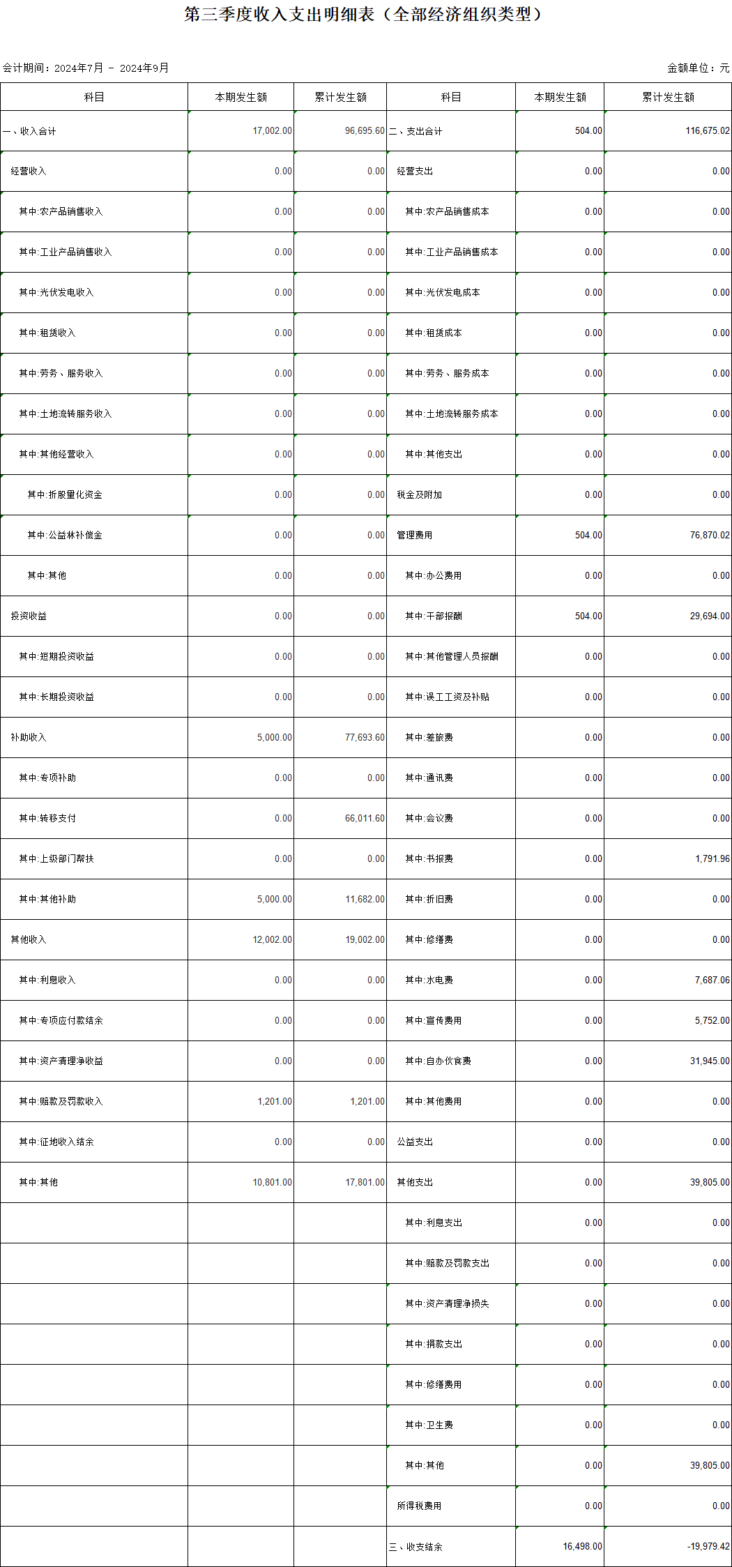 【財務收支】寨聯村2024年第三季度收支明細表公示