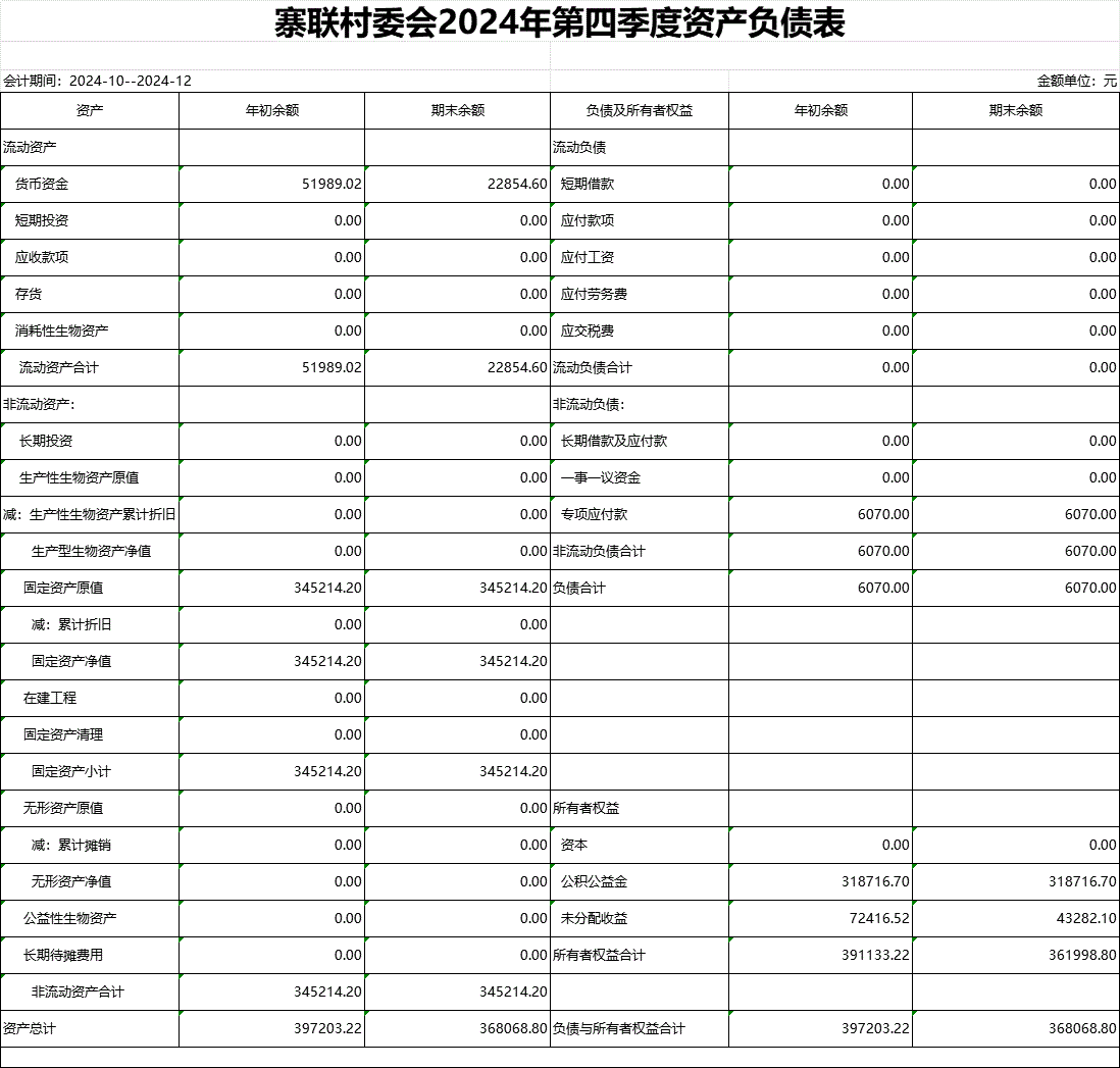 【財務收支】寨聯村2024年第四季度資產負債表公示