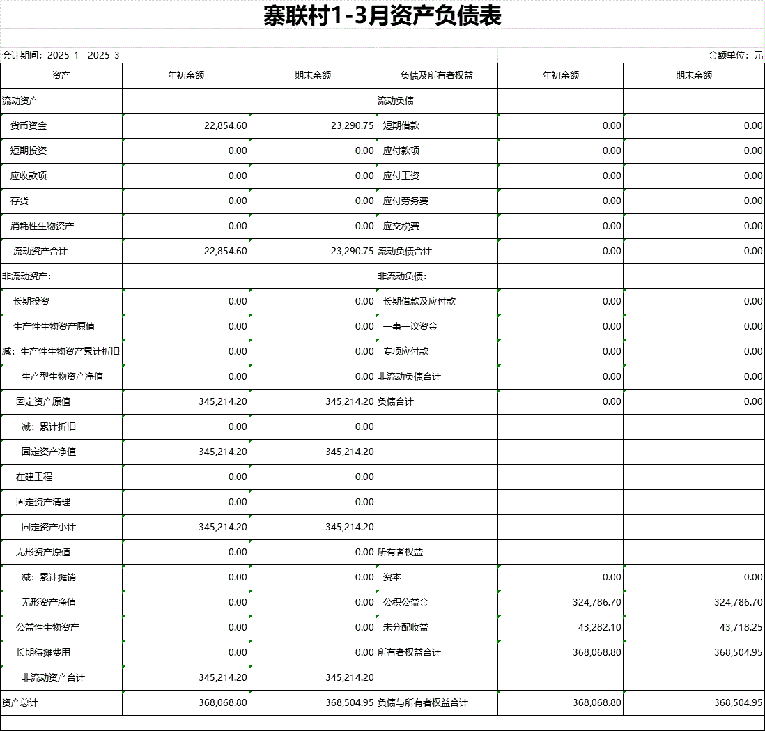 【財務收支】寨聯(lián)村2025年第一季度資產(chǎn)負債表公示
