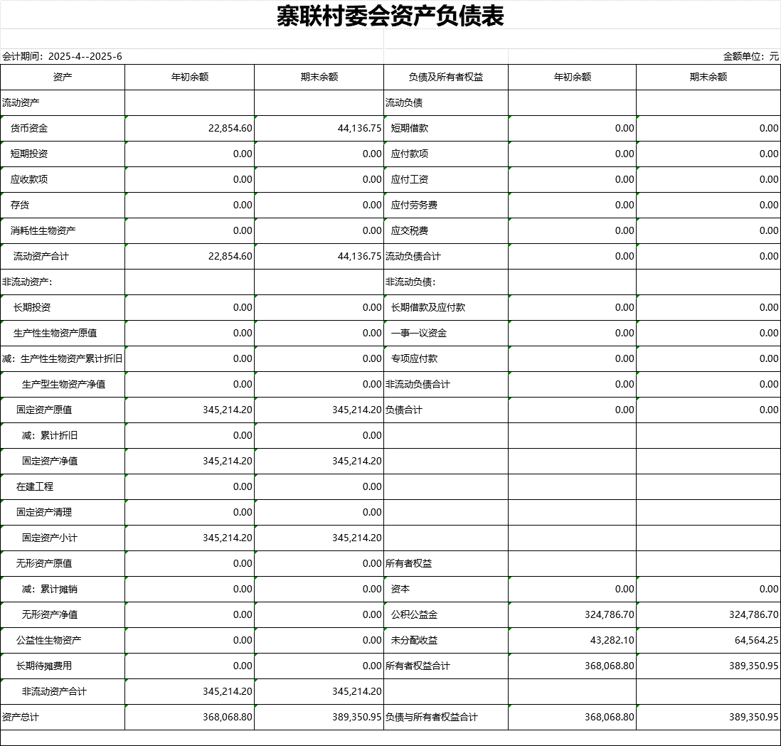 【財務收支】寨聯村2025年第二季度資產負債表公示