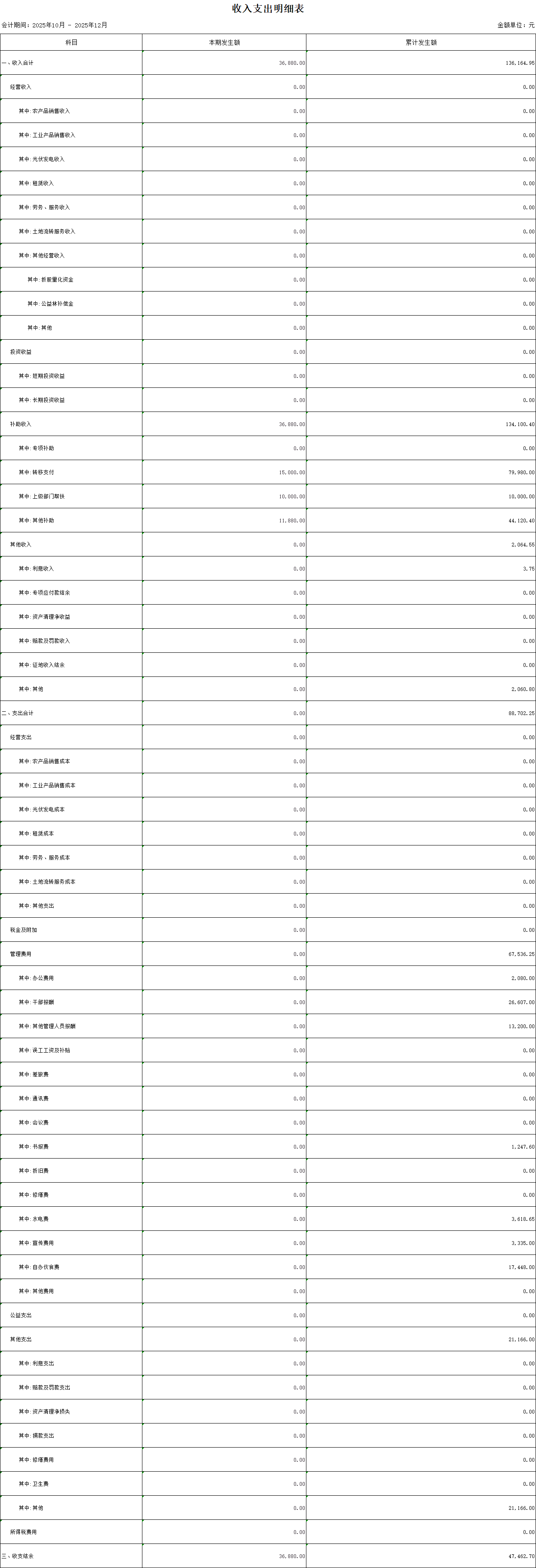 【財務收支】寨聯村2025年第四季度收支明細表公示