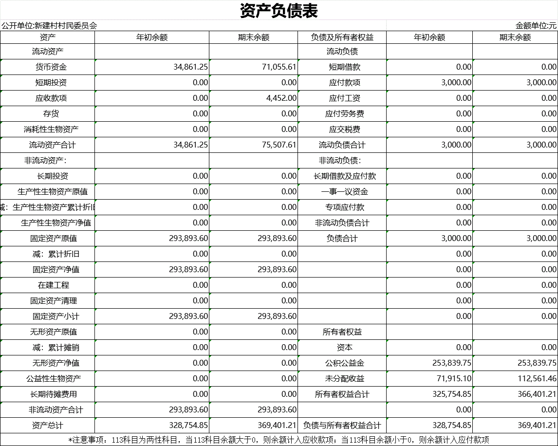 【財務收支】新建村2025年第四季度資產負債表公示