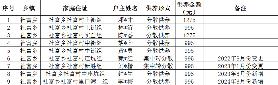 社富鄉(xiāng)社富村2025年12月農(nóng)村特困分散供養(yǎng)金撥款名單