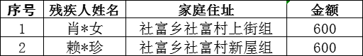 社富村2025年12月建檔立卡貧困重度失能殘疾人居家照護(hù)對(duì)象撥款名單