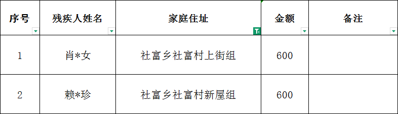 社富鄉(xiāng)社富村2026年1月建檔立卡貧困重度失能殘疾人居家照護(hù)對象撥款名單