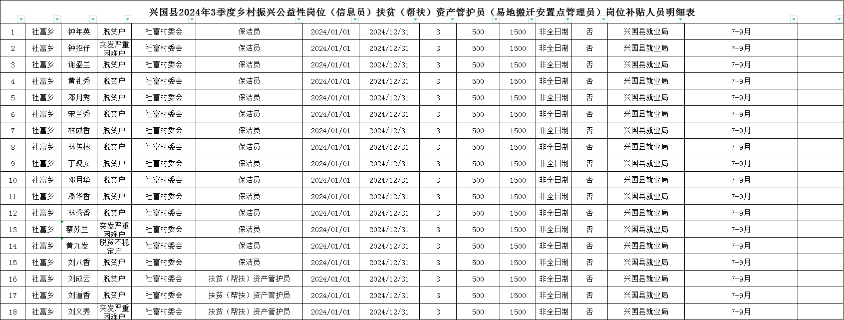(社富村)2024年第三季度鄉村振興公益性崗位明細表