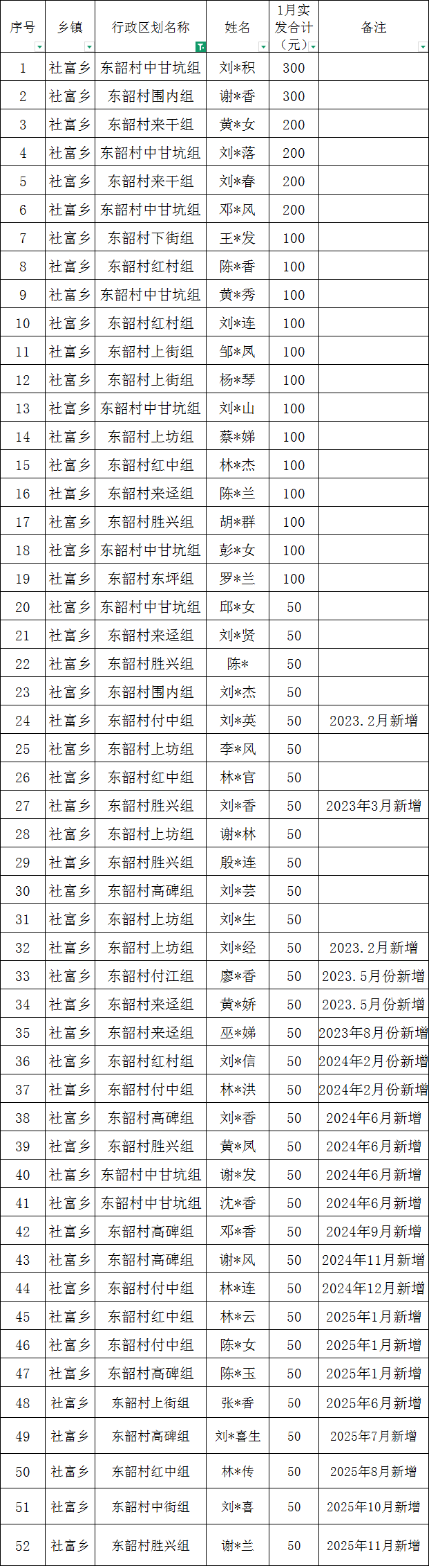 社富鄉東韶村2026年1月高齡老人長壽名單