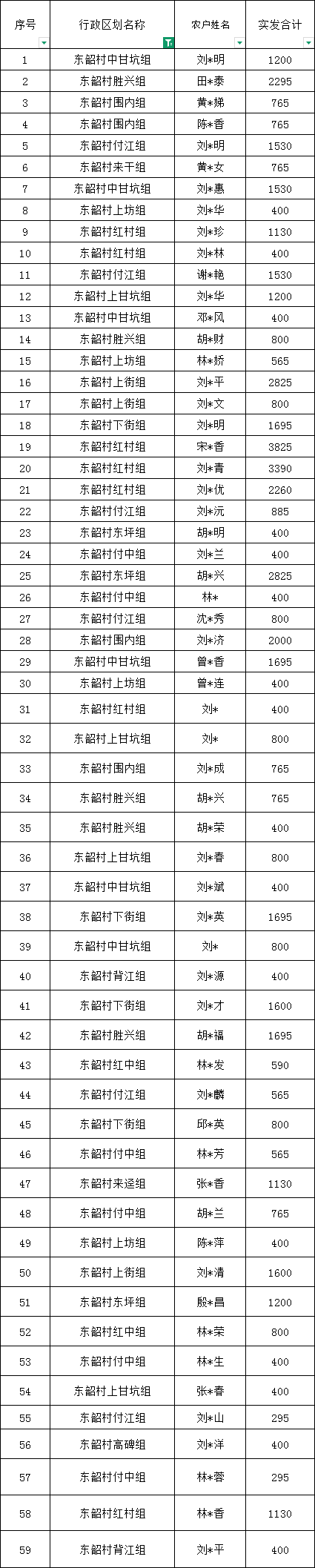 社富鄉東韶村預報2026年2月份農村低保匯總名單