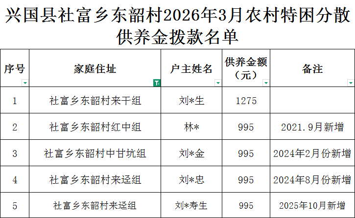 社富鄉東韶村2026年3月特困確認樣表