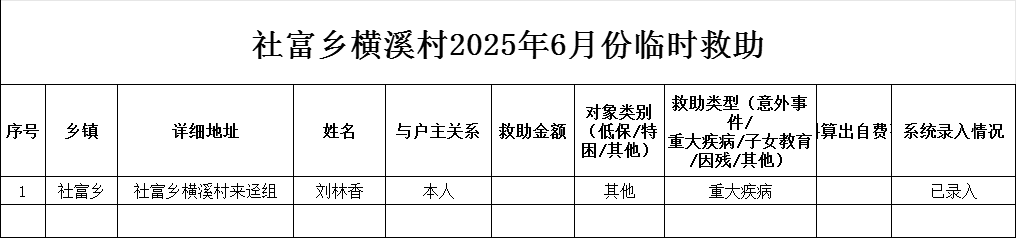 【社會救助】橫溪村2025年6月份臨時救助公示
