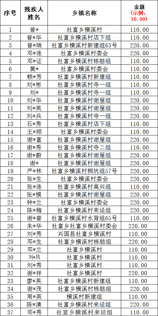 橫溪村2025年12月殘疾人“兩項”申請發放總表