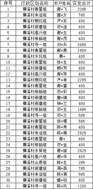 【社會救助】橫溪村2025年12月份農(nóng)村低保名單公示