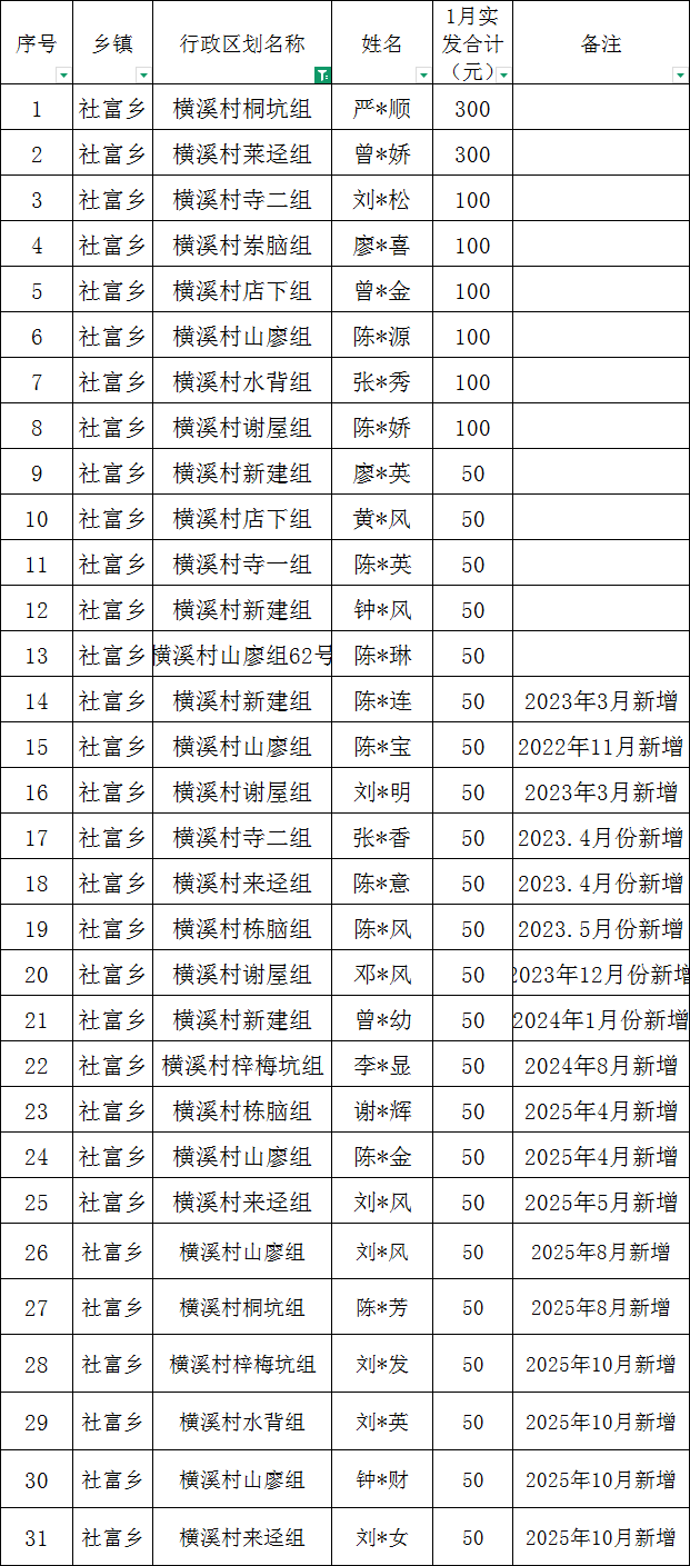 社富鄉橫溪村2026年1月高齡老人長壽名單