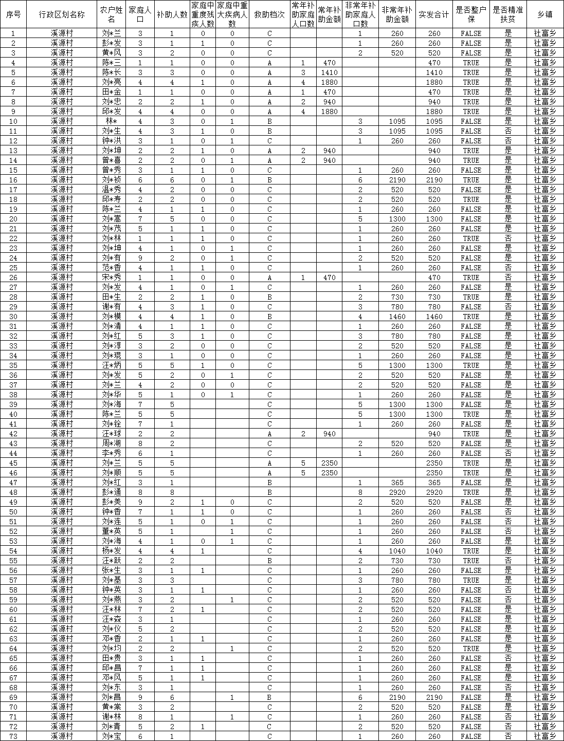 【社會救助】溪源村2025年6月份農村低保名單公示