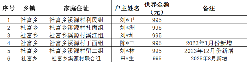 社富鄉(xiāng)溪源村2025年12月農(nóng)村特困分散供養(yǎng)金撥款名單