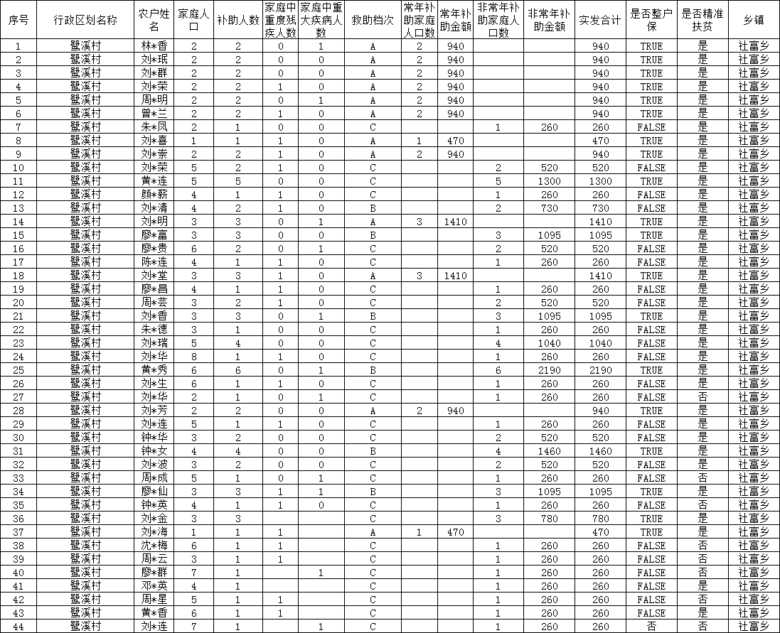 【社會救助】鷺溪村2025年6月份農村低保名單公示