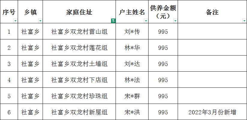 社富鄉雙龍村2026年2月特困確認樣表
