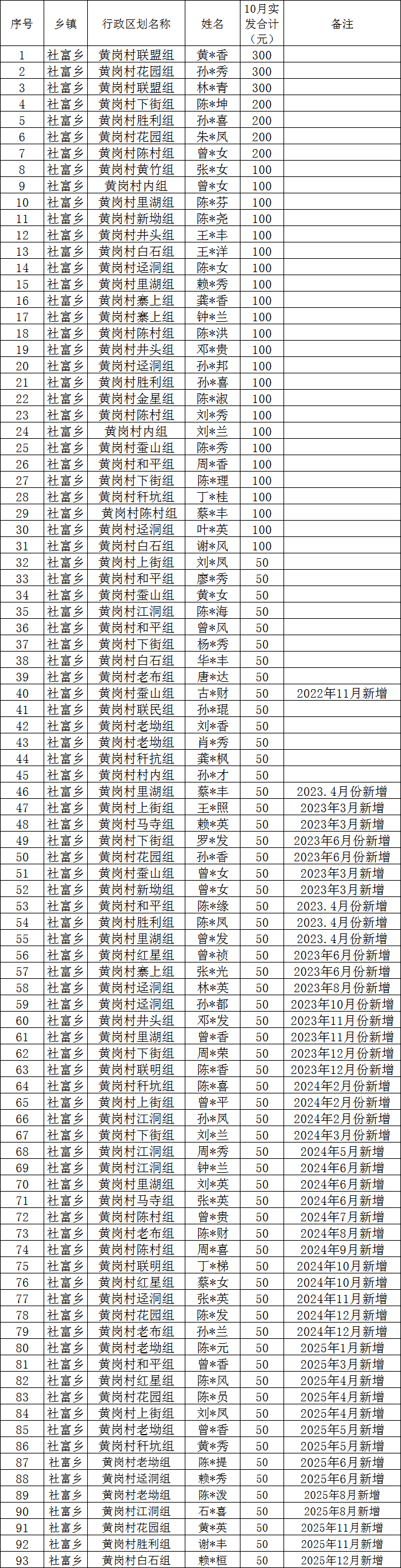 黃崗村2025年12月高齡老人長壽名單