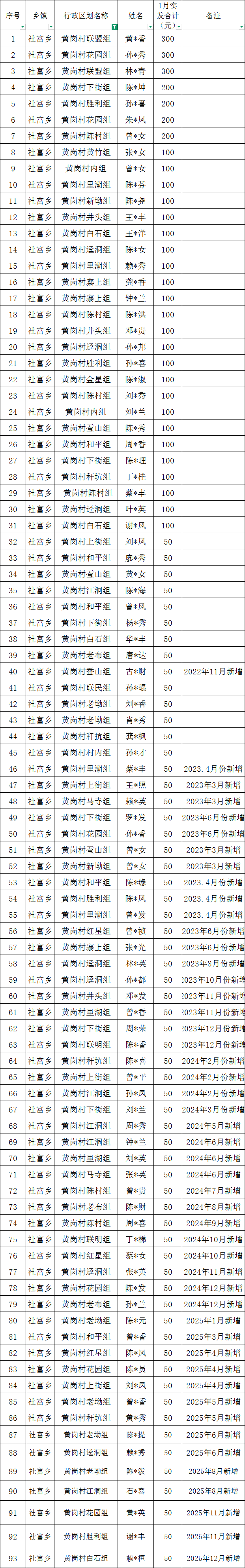 社富鄉(xiāng)黃崗村2026年1月高齡老人長壽名單
