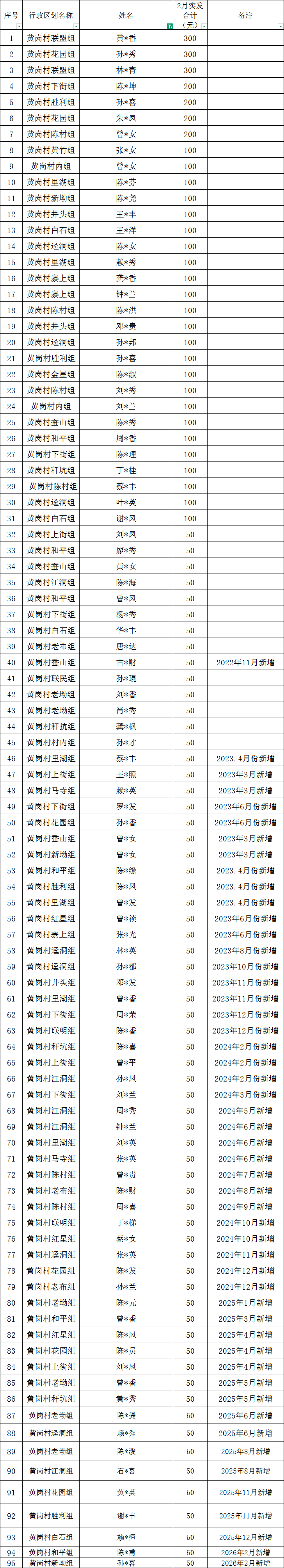 社富鄉(xiāng)黃崗村2026年2月高齡老人長壽名單