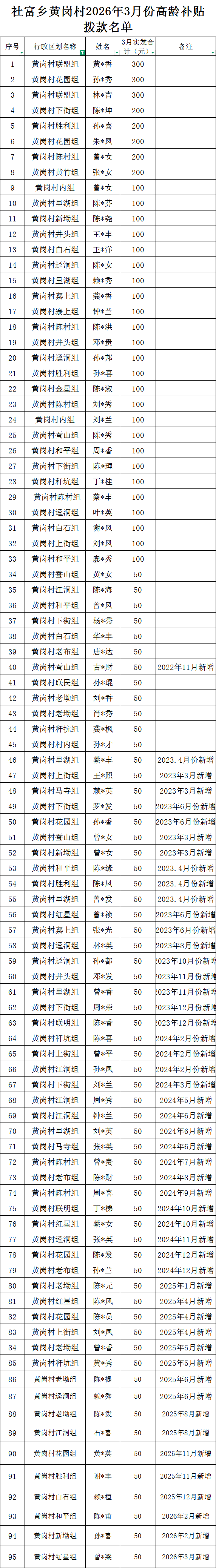 社富鄉(xiāng)黃崗村2026年3月高齡老人長壽名單