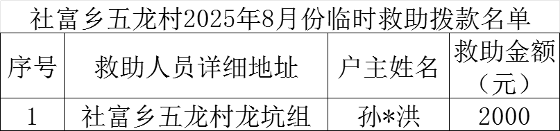 社富鄉五龍村2025年8月臨時救助撥款名單