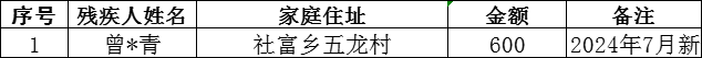 五龍村2025年12月建檔立卡貧困重度失能殘疾人居家照護對象撥款名單