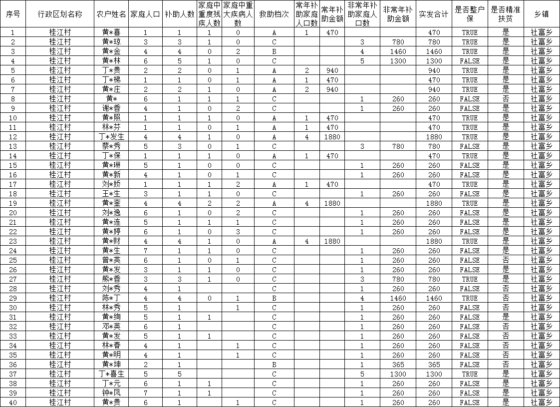【社會(huì)救助】桂江村2025年6月份農(nóng)村低保名單公示