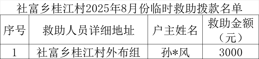 社富鄉桂江村2025年8月臨時救助撥款名單