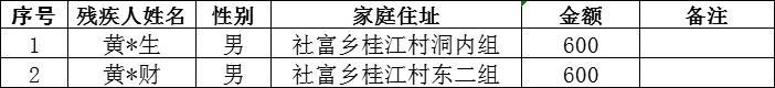 桂江村2025年12月建檔立卡貧困重度失能殘疾人居家照護對象撥款名單
