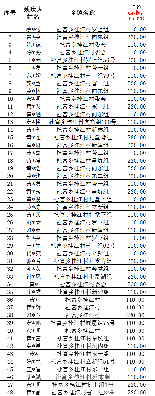 桂江村2025年12月殘疾人“兩項(xiàng)”申請發(fā)放總表