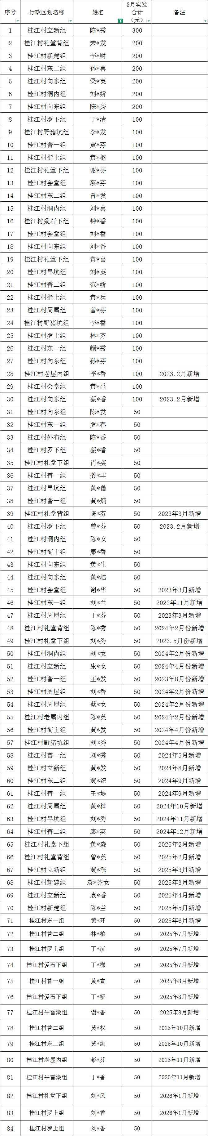 社富鄉桂江村2026年2月高齡老人長壽名單