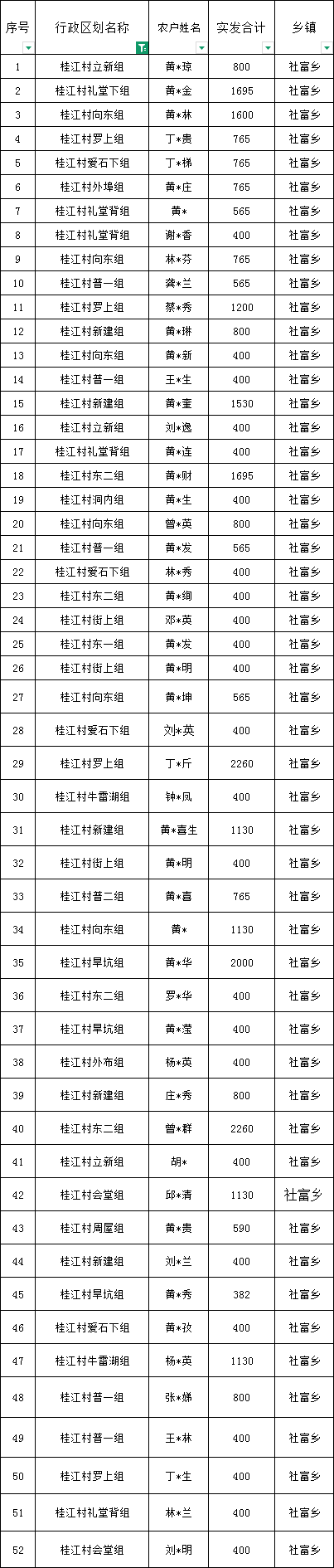 社富鄉(xiāng)桂江村預(yù)報2026年2月份農(nóng)村低保匯總名單