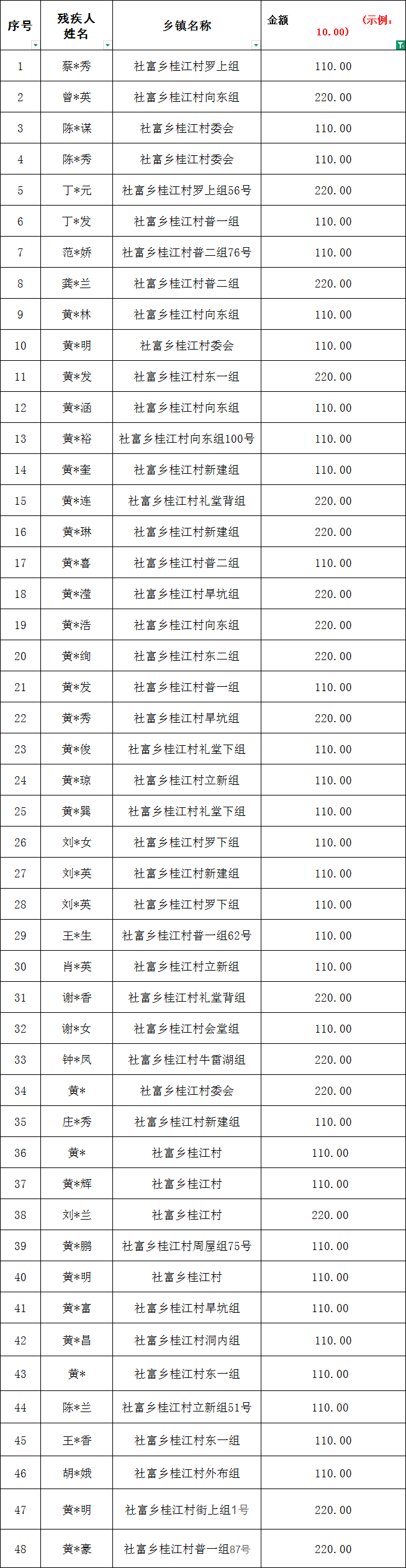 社富鄉(xiāng)桂江村2026年2月份殘疾人兩項(xiàng)補(bǔ)貼撥款名單