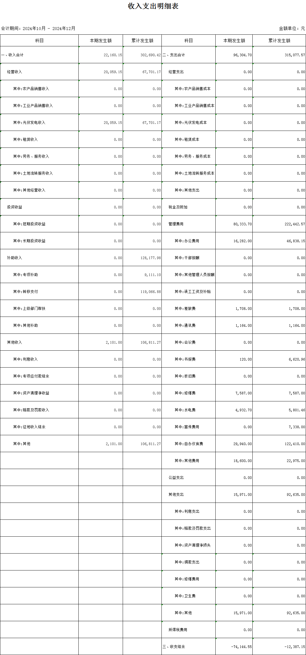桂江村第四季度收入支出明細(xì)表