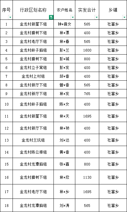 社富鄉金龍村預報2026年2月份農村低保匯總名單