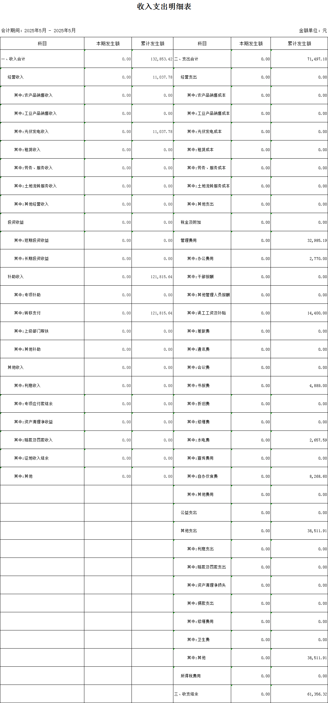 金龍村2025年第一季度村級收入支出明細表
