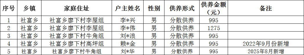 社富鄉廖下村2025年12月農村特困分散供養金撥款名單