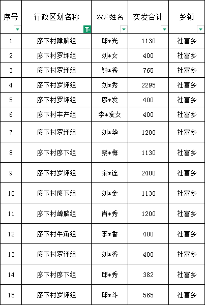 社富鄉廖下村預報2026年1月份農村低保匯總名單