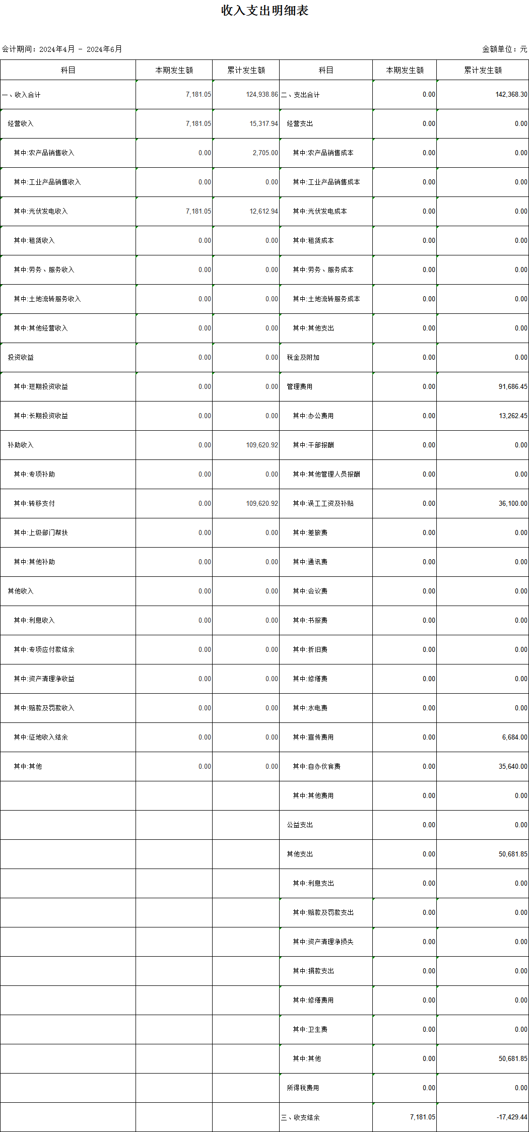 廖下村第二季度收入支出明細表