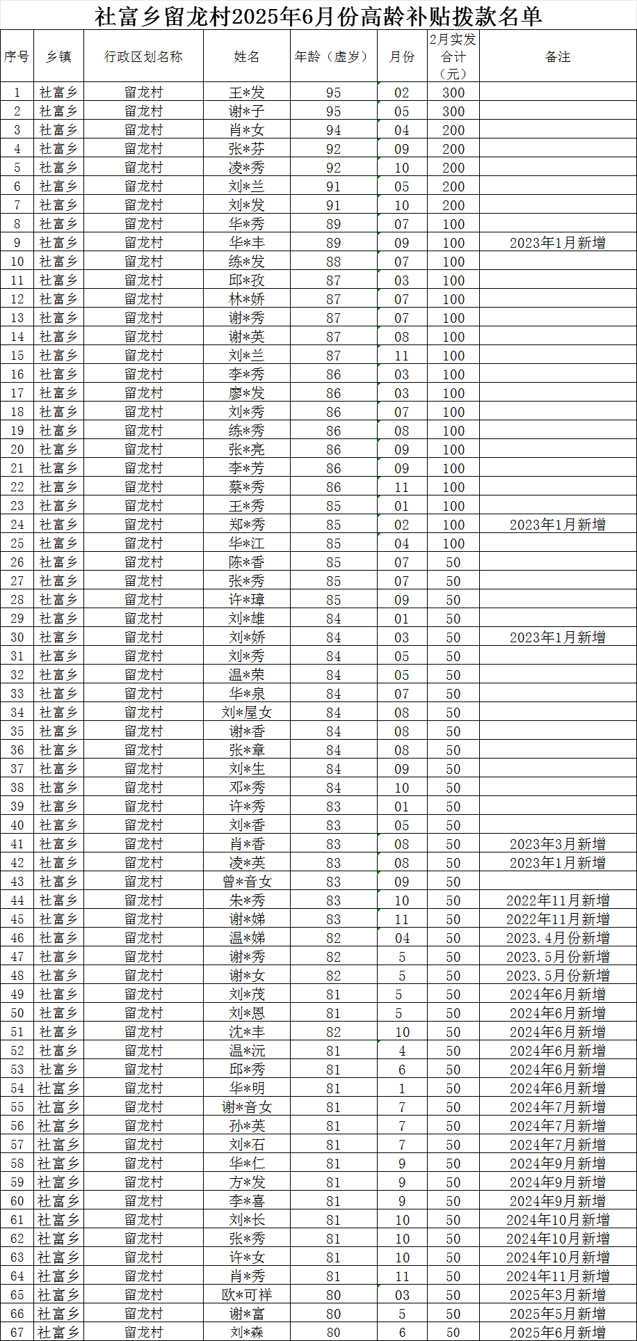 【養(yǎng)老服務(wù)】留龍村2025年6月高齡老人長(zhǎng)壽名單