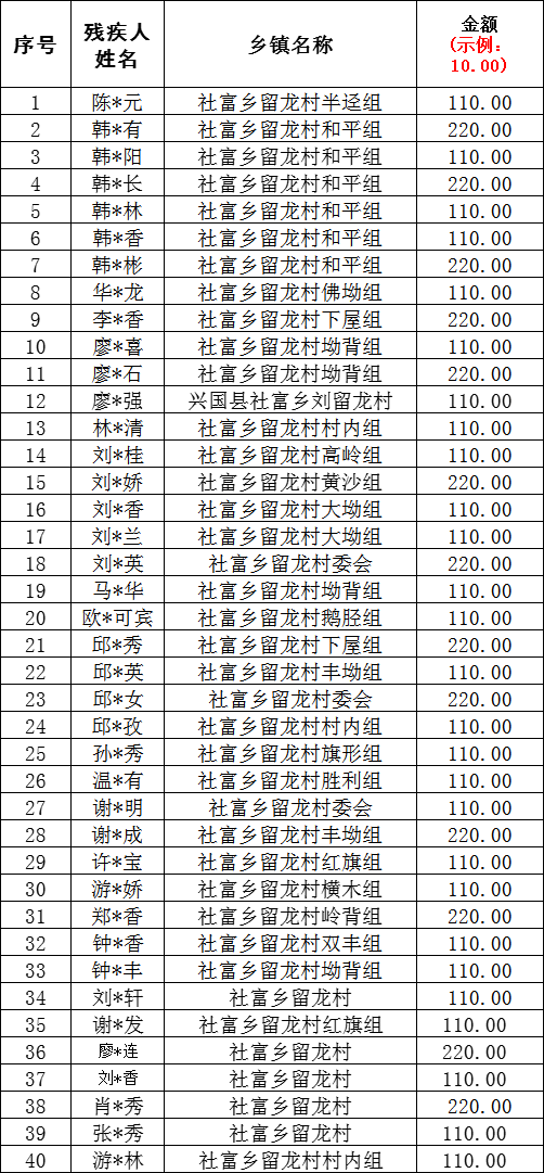 留龍村2025年12月殘疾人“兩項”申請發放總表