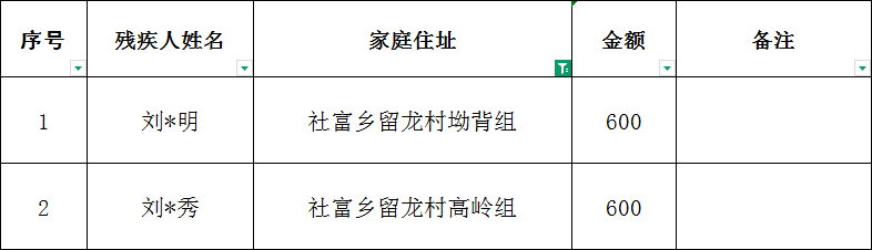 社富鄉留龍村2026年2月建檔立卡貧困重度失能殘疾人居家照護對象撥款名單
