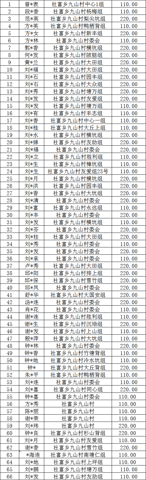 九山村2025年12月份殘疾人兩項補貼撥款名單