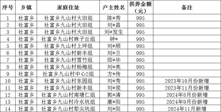 【社會救助】九山村2025年12月特困確認樣表公示