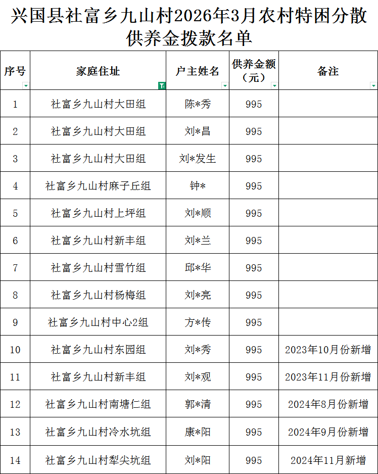 社富鄉(xiāng)九山村2026年3月特困確認(rèn)樣表