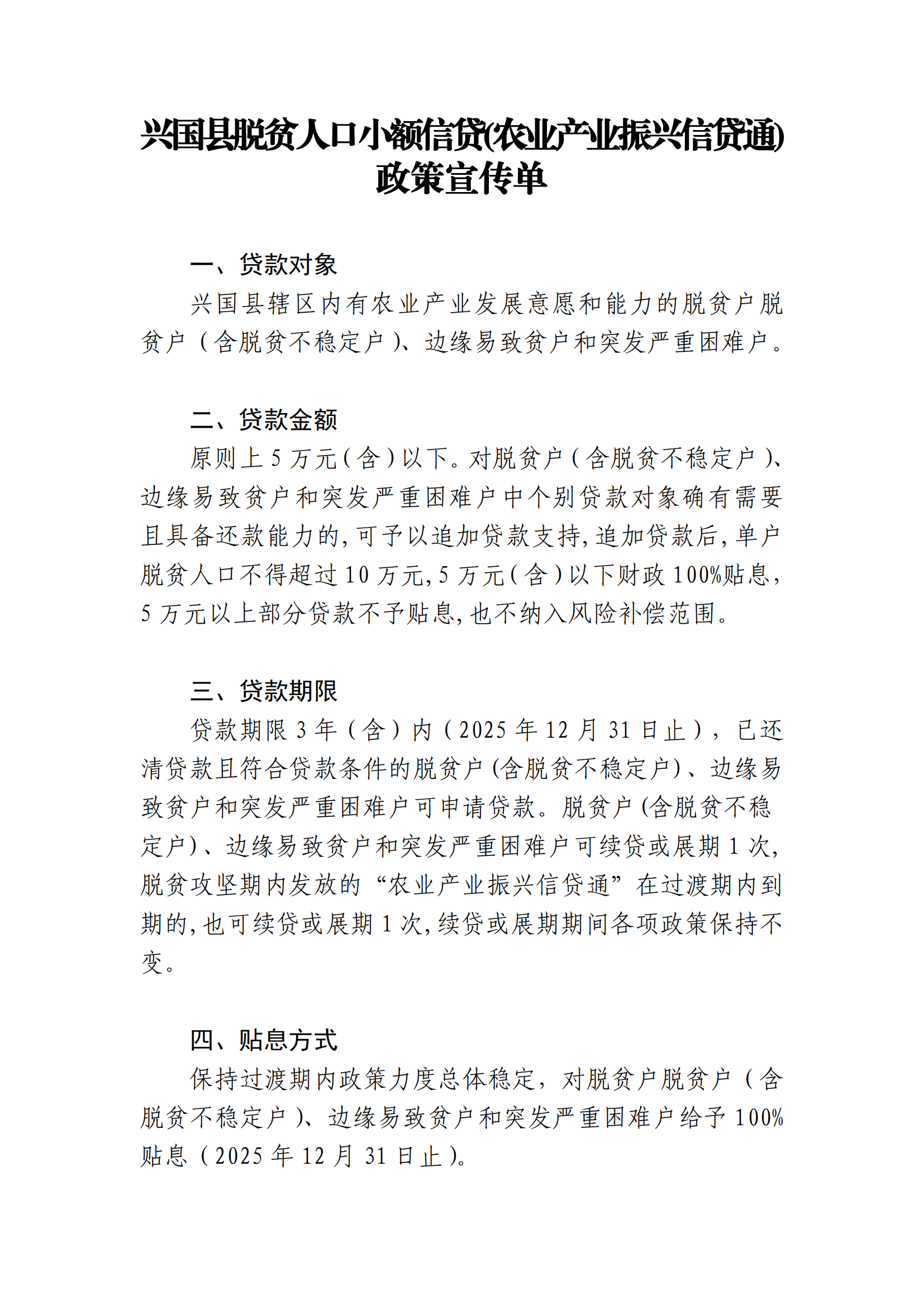 興國縣脫貧人口小額信貸(農業產業振興信貸通)政策宣傳