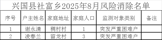 興國(guó)縣社富鄉(xiāng)2025年8月風(fēng)險(xiǎn)消除名單