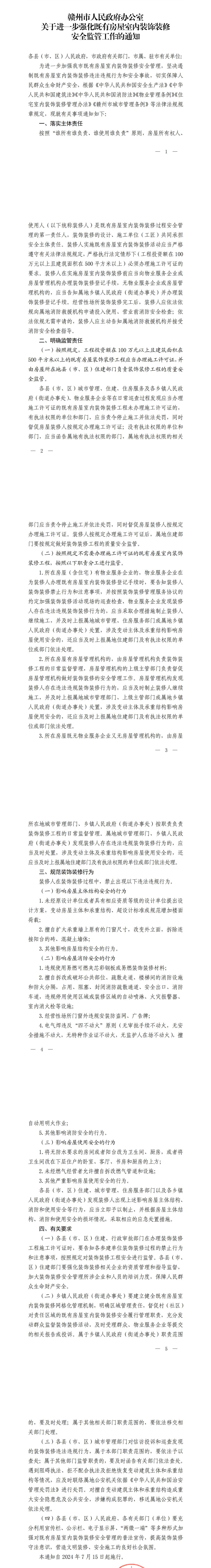【有效】贛市府辦發(fā)〔2024〕13號(hào) 關(guān)于進(jìn)一步強(qiáng)化既有房屋室內(nèi)裝飾裝修安全監(jiān)管工作的通知